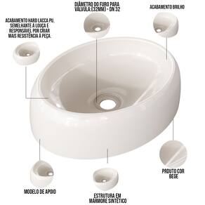 Estrutura em Mármore Sintético com acabamento Hard Lacca PU, semelhante a louça e responsável por criar mais resistência a peça.