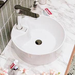 Cuba de apoio em cerâmica de alta qualidade, garantindo resistência e durabilidade. Com formato redondo e cor branca brilhante, oferece um visual moderno e sofisticado, adaptando-se a diversos estilos de decoração. O acabamento em brilho adiciona um toque de luxo ao ambiente.