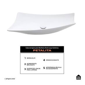 A Cuba de Apoio para Banheiro Oval Louça Cerâmica Petalita da Pingoo.casa - Branco oferece sofisticação e praticidade para o seu banheiro ou lavabo.
