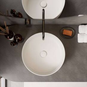 A Cuba Selene Don Artesano é a escolha ideal para banheiros que buscam delicadeza e sofisticação. Produzida em Superfície Sólida Mineral, oferece acabamento fosco impecável, alta resistência e fácil manutenção. Seu formato redondo e fluido remete à perfeição e ao ciclo da lua, evocando a serenidade da deusa Selene. Versátil e elegante, é perfeita para bancadas modernas que valorizam suavidade nas formas e design contemporâneo.
