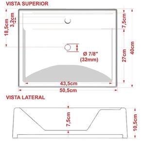 Furação da Cuba: Acabamento Torneira: 7/8 (32mm) - Válvula: 7/8 (32mm)