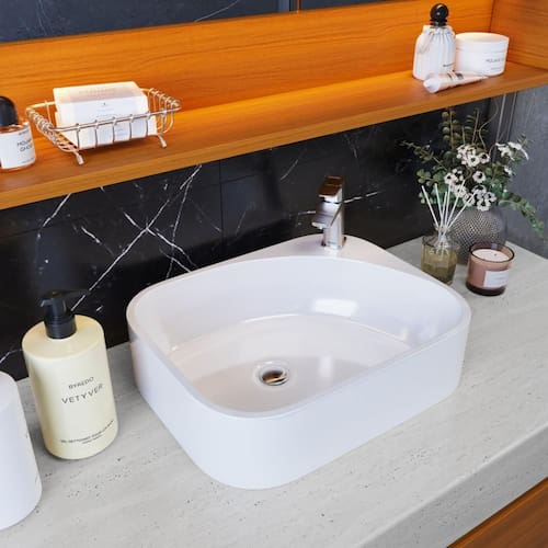 Cuba de Apoio Retangular Quartzo Branca Luxo Moderna para Banheiro e Lavabo