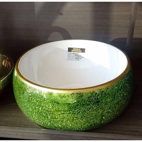 Cuba de sobrepor de cerâmica com trabalho em vidros