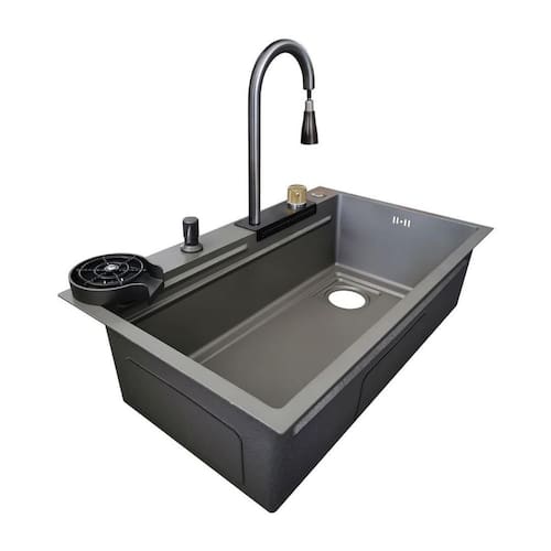 Cuba de Cozinha Smart Cinza Aço Inox com Torneira e Cascata Apresentamos a Cuba de Cozinha Smart em Aço Inox com Cascata, uma adição indispensável para elevar o charme e a funcionalidade da sua cozinha. Desenvolvida com cuidado e utilizando materiais de alta qualidade, esta cuba proporciona uma experiência superior em todas as suas atividades diárias na cozinha. Feita de aço inoxidável 304 com tecnologia de ponta, esta cuba oferece uma resistência excepcional e proteção contra corrosão. Seu acabamento em cinza fosco confere um toque de elegância moderna que se adapta perfeitamente a qualquer estilo de decoração de cozinha. Com medidas generosas de 75cm x 45cm e uma espessura de 1.2mm, esta cuba oferece um amplo espaço para realizar suas tarefas de preparação e limpeza com total facilidade. Além disso, sua função de cascata proporciona um fluxo suave e constante de água, tornando as atividades como encher recipientes e lavar alimentos mais eficientes e agradáveis. Acompanhada por uma tábua de madeira de alta densidade, esta cuba oferece uma superfície resistente e durável para cortar e preparar alimentos, mantendo sua área de trabalho limpa e organizada. O sistema de drenagem eficiente, com válvula de escoamento de 4.1/2'', garante uma remoção rápida e eficaz de resíduos, mantendo a cuba sempre pronta para o próximo uso. Além disso, a Cuba de Cozinha Smart conta com um sistema de isolamento acústico que reduz o ruído durante o uso, proporcionando uma experiência mais tranquila e agradável na sua cozinha. Sua torneira inteligente, com ajuste de temperatura e duas opções de jatos, oferece maior controle e conveniência para suas diversas tarefas culinárias. Especificações Técnicas: Material: Aço Inox 304 com Nano Tecnologia Cor: Cinza Fosco Dimensões da Cuba: 75cm x 45cm Espessura do Aço Inox: 1.2mm Acabamento: Cinza fosco Sistema de Drenagem: Válvula de escoamento de 4.1/2'' Ajuste de Temperatura: Sim Opções de Montagem: Embutida, Sobreposta Isolamento Acústico: Sim : 1 ano contra defeitos de fabricação Marca: Não Informado