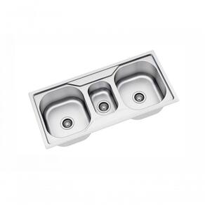 Com está cuba está incluso, válvula redonda 4.1/2 polegadas, aramado escorredor cromado e cesto inox e sifão triplo.