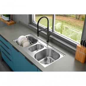 CUBA FUNZIONALE 232 em aço inox acetinado de 1.0 mm de espessura, com design arredondado, proporciona benefícios e facilidades no desenvolvimento das tarefas diárias, através das suas duas cubas, e cuba central auxiliar. A FUNZIONALE 232 foi pensada para atender uma família grande, garantindo o máximo de organização e facilidade de limpeza.