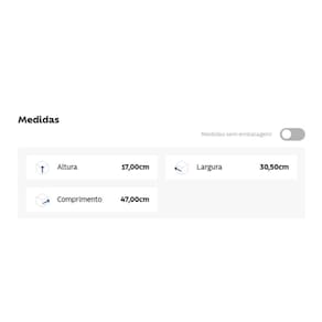 - Dimensões do Produto (A x L x P): Altura: 17cm | Largura: 30 | Comprimento: 47cm