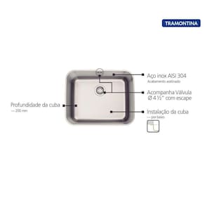 Ela ainda vem acompanhada de válvula de 4 1/2'' com escape e possui bordas lisas adequadas para instalação por baixo de bancadas.