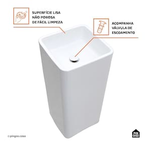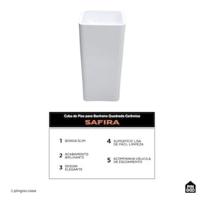 A Cuba de Piso para Banheiro Quadrada Cerâmica Safira da Pingoo.casa - Branco oferece sofisticação e funcionalidade para banheiros e lavabos.