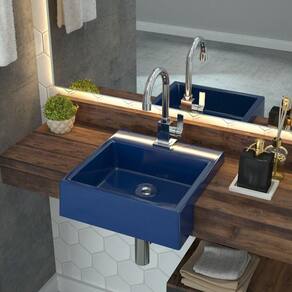 Cuba De Semi Encaixe Quadrada C01 Para Banheiro Xq355 Azul Escuro - Lyam Decor