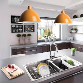 A Cuba de Sobrepor Dupla Franke Bell 86x48 30 Litros e 24 Litros Inox traz sofisticação e funcionalidade para a sua cozinha com design exclusivo. Ideal para o preparo de alimentos e utilização de grandes utensílios, conta com um sistema exclusivo de fixação (Fast Fixing) de fácil instalação. Esta cuba tem vedação perfeita e possui ladrão oculto que oferece maior segurança contra transbordamentos.