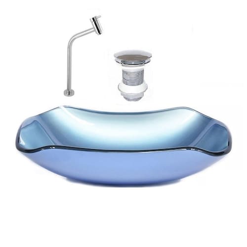 Cuba de vidro abaulada 51cm azul + valvula + torneira as nossas cubas de vidro são ideais para projetos de decoração em banheiros com alto padrão e bom gosto, pois proporcionam um efeito moderno e único ao ambiente,são instaladas sobre a bancada e por isso realçam com destaque o acabamento do seu banheiro, sem contar a eficiência e praticidade que se leva para a sua casa. O vidro é pintados com tinta de alta performance, o que lhe garante a permanência da cor. Dados técnicos