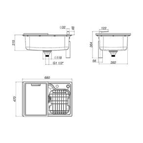 - 1 Cuba 1 Tábua 1 Dosador de Sabão de 500ml 1 Cesto Aramado 1 Válvula