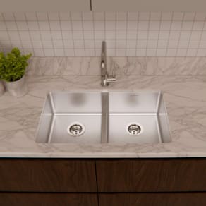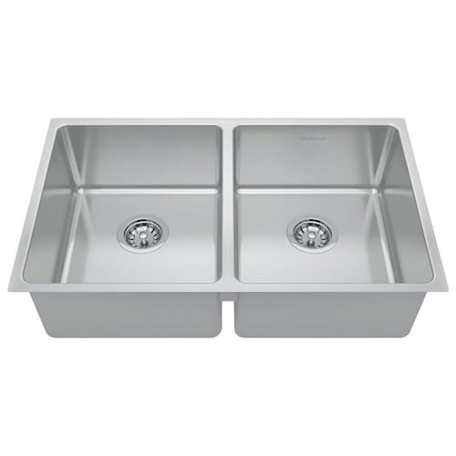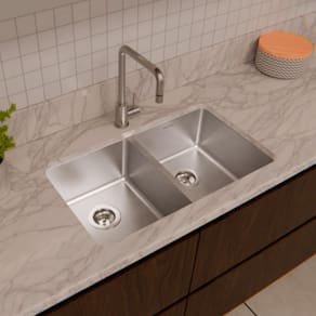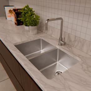 Características Adicionais: Cuba dupla, proporciona mais comodidade e organização Permite separar utensílios e alimentos durante a higienização Traços retos com cantos arredondados raio 20, facilitando a limpeza Acompanha válvulas de 4.1/2¿ compatíveis com triturador de resíduos alimentares Manta redutora de ruído, reduz o som da água e respingos
