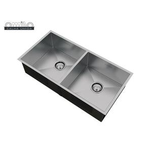 Material: Aço Inoxidável AISI 304 Espessura: 1 mm Acabamento: Escovado Instalação: Embutir Medidas externas: 860 x 440mm (Comp x Larg) Medidas internas: 400 x 400mm + 400 x 400 (Comp x Larg) Profundidade da cuba: 200mm Acompanha 2 válvulas de 4.1/2".