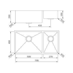 Cuba Dupla Mekal Linha Retta LR-50/27 79x40 Aço Escovado -