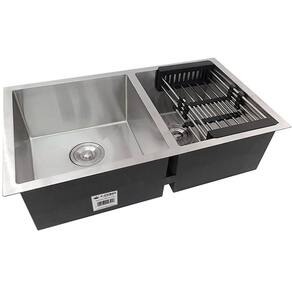 Cuba Dupla Quadrada Inox 304 Cozinha Pia Embutir Sobrepor Gourmet 8840 Premium Assimétrica com Lixeira de Embutir 5L e Acessórios