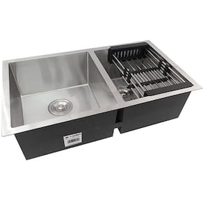 cuba Dupla Quadrada Inox 304 Cozinha Pia Embutir Sobrepor Gourmet 8840 Premium Assimétrica com Lixeira de Embutir 5L e Acessórios