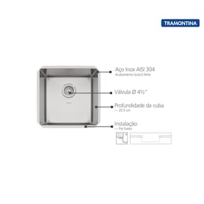 Cuba embutir Tramontina Design Collection Inox 40U 40x40 cm Cuba em aço inox AISI 304 com 1mm de espessura e acabamento Scotch Brite.Cuba com 205 mm de profundidade.Raio interno da cuba de 12 mm.Cuba com manta adesiva antirruído.Acompanha o produto válvula Ø 4 1/2.Dimensões de corte do tampo disponíveis para consulta no manual do produto no site ou no gabarito de corte que acompanha com a peça. Ficha técnica - Cor: Inox Medidas aproximadas do produto - Comprimento: 55 cm - Altura: 28 cm - Largura: 60 cm - Peso: 4800 g Marca: Não Informado Ean: 7894693777898