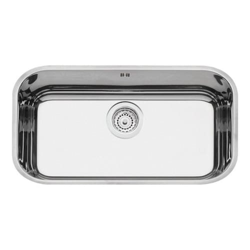 Produto: Cuba com bordas lisas para instalação por baixo da bancada e 14 cm de profundidade. Opcionalmente são oferecidos acessórios como, tábua em madeira, grade aramada, bandeja perfurada e cesta quadrada.