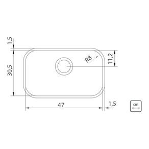 Produto: Cuba com bordas lisas para instalação por baixo da bancada e 14 cm de profundidade. Opcionalmente é oferecido como acessório a grade aramada para o fundo da cuba.