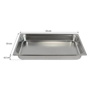 Com acabamento polido, cantos arredondados e espessura reforçada, é ideal para uso em buffets, refeitórios, hotéis, cozinhas industriais e eventos. Sua profundidade de 65 mm é indicada para porções menores, alimentos frios ou reabastecimento rápido, otimizando a operação diária com praticidade.