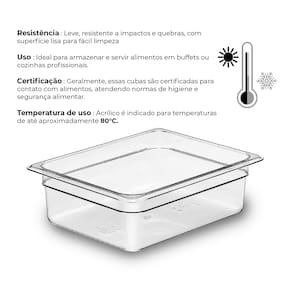 Imagine-se no coração de uma cozinha profissional, onde cada segundo conta e cada detalhe faz a diferença. Você, um chef apaixonado ou um organizador de eventos, sabe como a apresentação e a eficiência são cruciais para impressionar seus clientes e amigos. É nesse cenário que a nossa **Cuba Gastronômica de Acrílico GN 1/2** se destaca, transformando seu modo de preparar e servir.