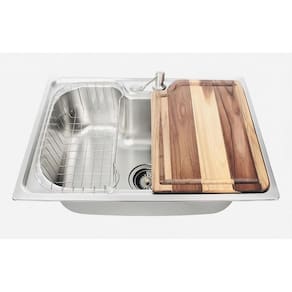 Acompanha válvula de 4 1/2 que possibilita a instalação de Triturador de Resíduos, Escorredor de Louça em Aço Inox e Dispenser de detergente em Aço Inox.
