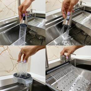 • Material resistente – Fabricada em Aço Inox 304, com acabamento escovado que proporciona mais durabilidade e resistência ao desgaste. • Design funcional – Profundidade ideal para evitar respingos e facilitar o manuseio de utensílios grandes. • Acessórios integrados – Lavador de copos, escorredor de legumes e tábua de corte tornam o preparo dos alimentos mais prático. • Torneira extensível – Permite alternar entre jato e ducha, facilitando a limpeza. • Saída de água cascata – Estilo moderno e fluxo contínuo para um toque sofisticado na cozinha. • Dispenser de detergente – Organização eficiente e bancada sempre limpa. • Fácil instalação – Compatível com diferentes tipos de bancadas, trazendo mais versatilidade.