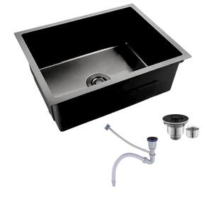 Cuba preta 60x45 gourmet com acessórios: acabamento escovado, ampla e perfeita para uma cozinha moderna.