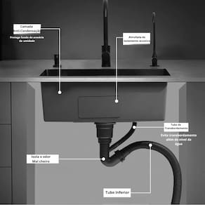 - 1x Cuba Gourmet - 1x Válvula de escoamento - 1x Tubulação do ladrão