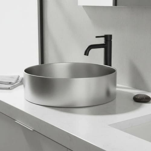 Linha: cuba redonda banheiro, cuba prata, cuba inox 304, cuba banheiro moderna, cuba de apoio, cuba redonda inox, cuba aço inox, cuba escovada prata, válvula click prata, sifão antiodor, cuba premium banheiro, cuba design moderno, cuba para lavabo, cuba resisten