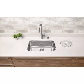 Cuba com bordas lisas para instalação por baixo da bancada e 17 cm de profundidade.