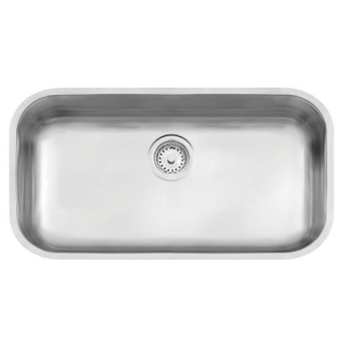 Cuba com bordas lisas para instalação por baixo da bancada e 17 cm de profundidade. Opcionalmente são oferecidos acessórios como, tábua em madeira, grade aramada, bandeja perfurada e cesta Quadrado.