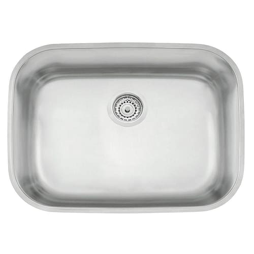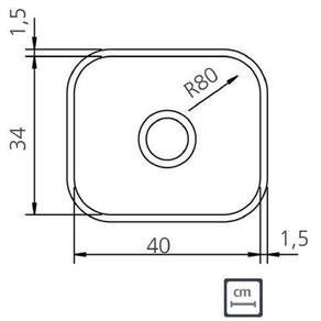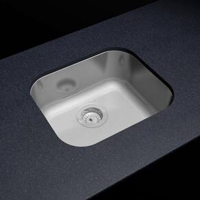 Cuba com borda lisa para instalação por baixo da bancada e 17 cm de profundidade. Opcionalmente são oferecidos acessórios como, tábua em madeira, grade aramada, bandeja perfurada e cesta Quadrado.