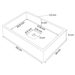 Fabricante: Loja DoceLar | Altura: 9 cm | Largura: 39 cm | Comprimento: 28 cm | Altura Embalado: 12,4 | Largura Embalado: 35,6 | Comprimento Embalado: 42,5 | Peso: 9 kg | Peso Embalado: 9 | Material: Cimento | Estado de Origem: SP | Descrição do Tamanho: 09 x 39 x 28 cm | Nome do Produto: Cuba Retangular Oregon Cimento 39x28cm | Garantia em Meses: 03 meses de garantia para defeitos de fabricação | Tonalidade: Multicolorido | Diâmetro: N/A | Modelo detalhado: Cuba Retangular Oregon Cimento 39x28cm | Profundidade: 28 cm | Quantidade de furos para torneira: Sem furos | Tipos: De sobrepor | Acabamento: Pintura | Forma: Retangular | Linha: Banheiro | Precisa de montagem?: Sim | Baterias são necessárias?: Não | Código ANVISA (32481): Não se aplica | Código da Homologação ANATEL (32495): Não se aplica | Código INMETRO (32486): Não se aplica | Certificação de teste externa: Não aplicável | Código MAPA (32485): Não se aplica | Componentes incluídos: cuba | Tipo de Material: Cimento | Número do modelo: 28300 | Número de caixas: 1 | Quantidade de itens: 1 | Fonte de energia: Não | Principais características do produto 0: cuba feita em cimento | Principais características do produto 1: possui ralo oculto | Principais características do produto 2: estilo rústico Cor: Cimento