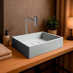 Com design moderno e feita em cimento, esta cuba retangular é perfeita para quem busca sofisticação com um toque industrial.