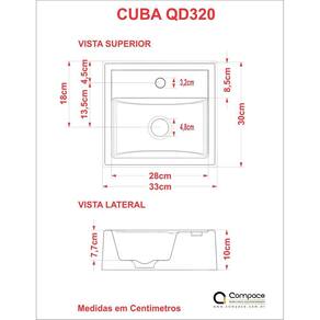 A cuba Q32 tem seu design quadrado, especial para pequenos espaços e um excelente escoamento de água. Fabricada em mármore sintético com acabamento em Hard Lacca PU, material bem semelhante a louça, muito resistente e mais econômico.