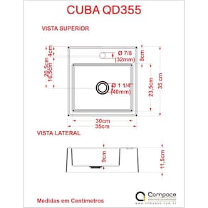 A cuba Q355 tem seu design quadrado e um excelente escoamento de água. Fabricada em mármore sintético com acabamento em Hard Lacca PU, material bem semelhante a louça, muito resistente e mais econômico.