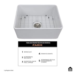 A Cuba para Cozinha Gourmet de Cerâmica Farm da Pingoo.casa - Branco combina elegância e funcionalidade para a sua cozinha.