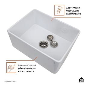 Conteúdo da embalagem : 1 Cuba de Cerâmica para Cozinha 1 Válvula de Escoamento Parafusos e Ganchos para fixação
