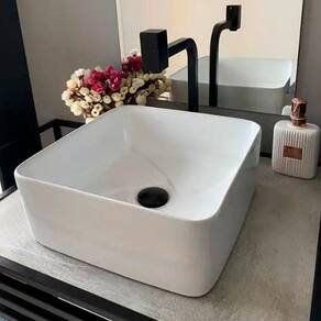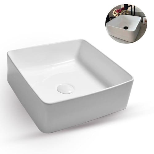 Cuba Pia Banheiro Cerâmica Branca Sobrepor Quadrada 37cm Deend