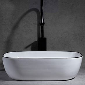 Tipo: Cuba Sobrepor Formato: Retangular cantos arredondados Material: Cerâmica Cor: Branco com borda preta Marca: Deend Altura: 13,5cm Largura: 46cm Profundidade: 32cm Peso: 7,2 Kg Modelo: D230927 EAN: 6927336609278