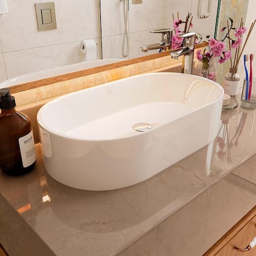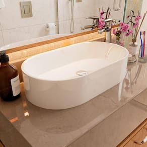 Cuba de apoio em mármore sintético para banheiro. Ideal para dar aquele toque moderno e elegante em qualquer tipo de banheiro. Versátil, o produto pode ser instalado na entrada de banheiros e lavabos, seja em locais comerciais ou residenciais, deixando o ambiente ainda mais bonito.