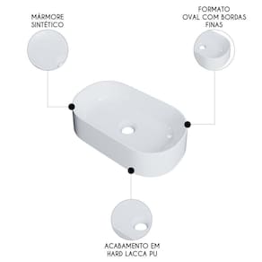 Fabricada em mármore sintético, um material composto por resina poliéster e carga mineral, com camada de Gel Coat e acabamento de pintura poliéster PU, ela é bastante semelhante à louça, porém mais econômica. Essa Cuba de Apoio combina resistência e durabilidade, além de ter uma instalação super prática. O acabamento em Hard Lacca PU garante brilho e proteção, proporcionando um visual sofisticado e fácil de manter.