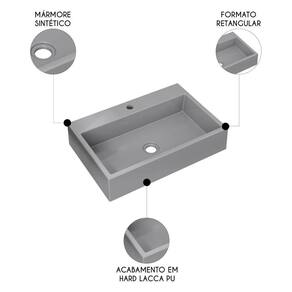 Fabricada em mármore sintético, um material composto por resina poliéster e carga mineral, com camada de Gel Coat e acabamento de pintura poliéster PU, ela é bastante semelhante à louça, porém mais econômica. A Cuba de Apoio combina resistência e durabilidade, além de já vir com furação para torneira, o que torna a instalação ainda mais prática. O acabamento em Hard Lacca PU garante brilho e proteção, proporcionando um visual sofisticado e fácil de manter.