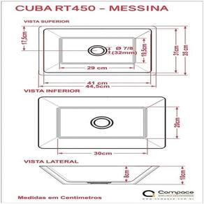 Cuba Pia De Apoio Para Banheiro Retangular Messina Rt45 Branco C08 - Mpozenato A Cuba Pia de Apoio Banheiro Retangular Messina Branco, da Mpozenato, é perfeita pra quem quer dar um toque vintage na decoração do banheiro ou lavabo, sem deixar de lado a funcionalidade. O modelo Messina RT450 tem um design que lembra o formato de bacia, o que transmite um tom clássico ao ambiente. Já as dimensões dessa pia se adapta facilmente às bancadas de diversos tamanhos. Além disso, a cuba Messina possui grande qualidade, sendo fabricada em mármore sintético com acabamento em Gel Coat, material semelhante à louça no quesito resistência, porém, bem mais econômica. Outro detalhe é que já vem com furação para válvula 7/8, o que proporciona um excelente escoamento da água e mantendo a pia mais limpa.