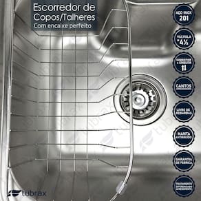 - Cesto escorredor projetado para copos e talheres, possui encaixe perfeito dentro da cuba, facilitando o enxague.