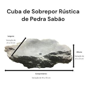 Ao efetuar a compra enviaremos fotos dos modelos disponíveis para escolha - as cubas são únicas e exclusivas não havendo nenhuma igual a outra. Há variações de tonalidade, tamanhos e formatos. Não acompanha válvula. Cuba bojo de pia de sobrepor pedra sabão rústica Elevando o estilo no seu lavabo com nossa cuba de pedra sabão Descubra o requinte e a beleza natural na sua casa de banho com a nossa cuba de lavabo em pedra sabão. Cada peça é uma obra de arte única, esculpida à mão para adicionar um toque de luxo e autenticidade ao seu espaço. Características exclusivas: Artesanalidade distinta: cada cuba é cuidadosamente esculpida por artesãos especializados, destacando as texturas e veios naturais da pedra sabão. Um toque artístico para o seu lavabo. Beleza duradoura: a pedra sabão é conhecida por sua durabilidade e resistência. Sua cuba de lavabo manterá sua beleza ao longo do tempo, resistindo a manchas e desgaste diário. Fácil manutenção: limpeza fácil e rápida a superfície lisa da pedra sabão permite uma manutenção simples, mantendo sua cuba sempre impecável. Toque natural: a pedra sabão é termicamente estável, proporcionando uma sensação suave e agradável ao toque. Desfrute de uma experiência única no seu lavabo. Por que escolher nossa cuba de lavabo em pedra sabão Exclusividade: cada cuba é uma peça única, garantindo que o seu lavabo seja verdadeiramente especial. Elegância duradoura: a pedra sabão é uma escolha intemporal, adicionando elegância e calor ao seu espaço. Sustentabilidade: a pedra sabão é uma opção eco-friendly, garantindo que você possa desfrutar de luxo com consciência ambiental. Transforme seu lavabo em um espaço de beleza natural e distinta. Deixe que a beleza única da nossa cuba de lavabo em pedra sabão eleve o seu espaço para um patamar de luxo autêntico. Descubra a fusão perfeita entre funcionalidade e design sofisticado. O que você achou Caso tenha ficado alguma dúvida pode nos contatar, teremos o maior prazer em atender. Explore as nossas outras opções de produtos, temos certeza que encontrará outros produtos de seu interesse : Visite nossas páginas. Equipe a panela de pedra Especificações: Medidas: - comprimento: pode variar de 37 a 50 cm - largura: pode variar de 25 a 35 cm - altura: pode variar de 13 a 20 cm - peso: pode variar de 15 a 20 kg Matéria prima - pedra sabão Para garantir a integridade do produto durante o transporte, limitamos o envio a 1 uma unidade por . Sujeito a cancelamento do pedido. Marca: Não Informado