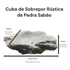 Ao efetuar a compra enviaremos fotos dos modelos disponíveis para escolha - as cubas são únicas e exclusivas não havendo nenhuma igual a outra. Há variações de tonalidade, tamanhos e formatos. Não acompanha válvula. Cuba bojo de pia de sobrepor pedra sabão rústica Elevando o estilo no seu lavabo com nossa cuba de pedra sabão Descubra o requinte e a beleza natural na sua casa de banho com a nossa cuba de lavabo em pedra sabão. Cada peça é uma obra de arte única, esculpida à mão para adicionar um toque de luxo e autenticidade ao seu espaço. Características exclusivas: Artesanalidade distinta: cada cuba é cuidadosamente esculpida por artesãos especializados, destacando as texturas e veios naturais da pedra sabão. Um toque artístico para o seu lavabo. Beleza duradoura: a pedra sabão é conhecida por sua durabilidade e resistência. Sua cuba de lavabo manterá sua beleza ao longo do tempo, resistindo a manchas e desgaste diário. Fácil manutenção: limpeza fácil e rápida a superfície lisa da pedra sabão permite uma manutenção simples, mantendo sua cuba sempre impecável. Toque natural: a pedra sabão é termicamente estável, proporcionando uma sensação suave e agradável ao toque. Desfrute de uma experiência única no seu lavabo. Por que escolher nossa cuba de lavabo em pedra sabão Exclusividade: cada cuba é uma peça única, garantindo que o seu lavabo seja verdadeiramente especial. Elegância duradoura: a pedra sabão é uma escolha intemporal, adicionando elegância e calor ao seu espaço. Sustentabilidade: a pedra sabão é uma opção eco-friendly, garantindo que você possa desfrutar de luxo com consciência ambiental. Transforme seu lavabo em um espaço de beleza natural e distinta. Deixe que a beleza única da nossa cuba de lavabo em pedra sabão eleve o seu espaço para um patamar de luxo autêntico. Descubra a fusão perfeita entre funcionalidade e design sofisticado. O que você achou Caso tenha ficado alguma dúvida pode nos contatar, teremos o maior prazer em atender. Explore as nossas outras opções de produtos, temos certeza que encontrará outros produtos de seu interesse : Visite nossas páginas. Equipe a panela de pedra Especificações: Medidas: - comprimento: pode variar de 37 a 50 cm - largura: pode variar de 25 a 35 cm - altura: pode variar de 13 a 20 cm - peso: pode variar de 15 a 20 kg Matéria prima - pedra sabão Para garantir a integridade do produto durante o transporte, limitamos o envio a 1 uma unidade por . Sujeito a cancelamento do pedido.